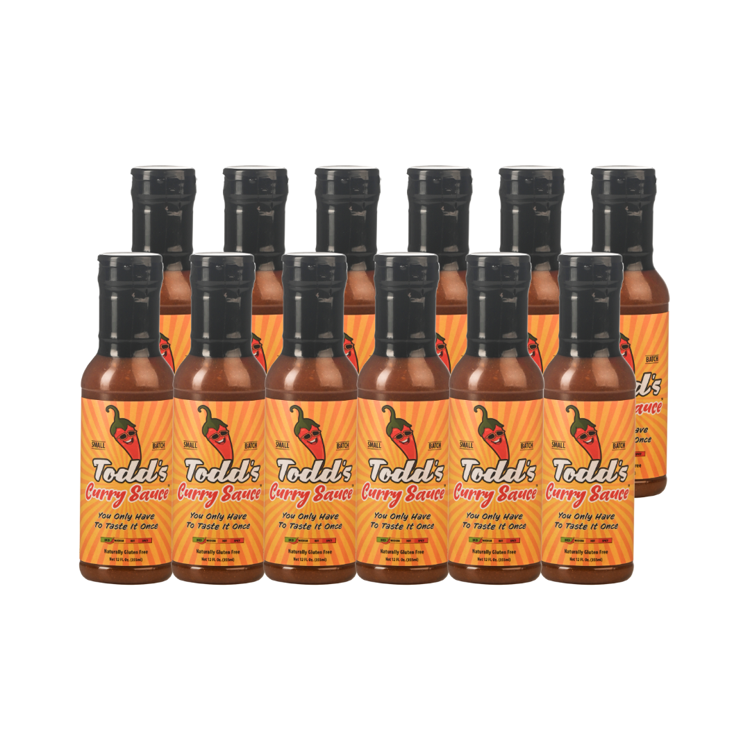 1 Case (12 Bottles) of Todds Curry Sauce - 12oz Plastic Bottles with Convenient Pour Top. Discover Todd's Curry Sauce, a small batch and handcrafted sauce that brings the perfect blend of flavors to any dish. Made with high-quality ingredients, this sauce will elevate your meals to a whole new level of deliciousness.