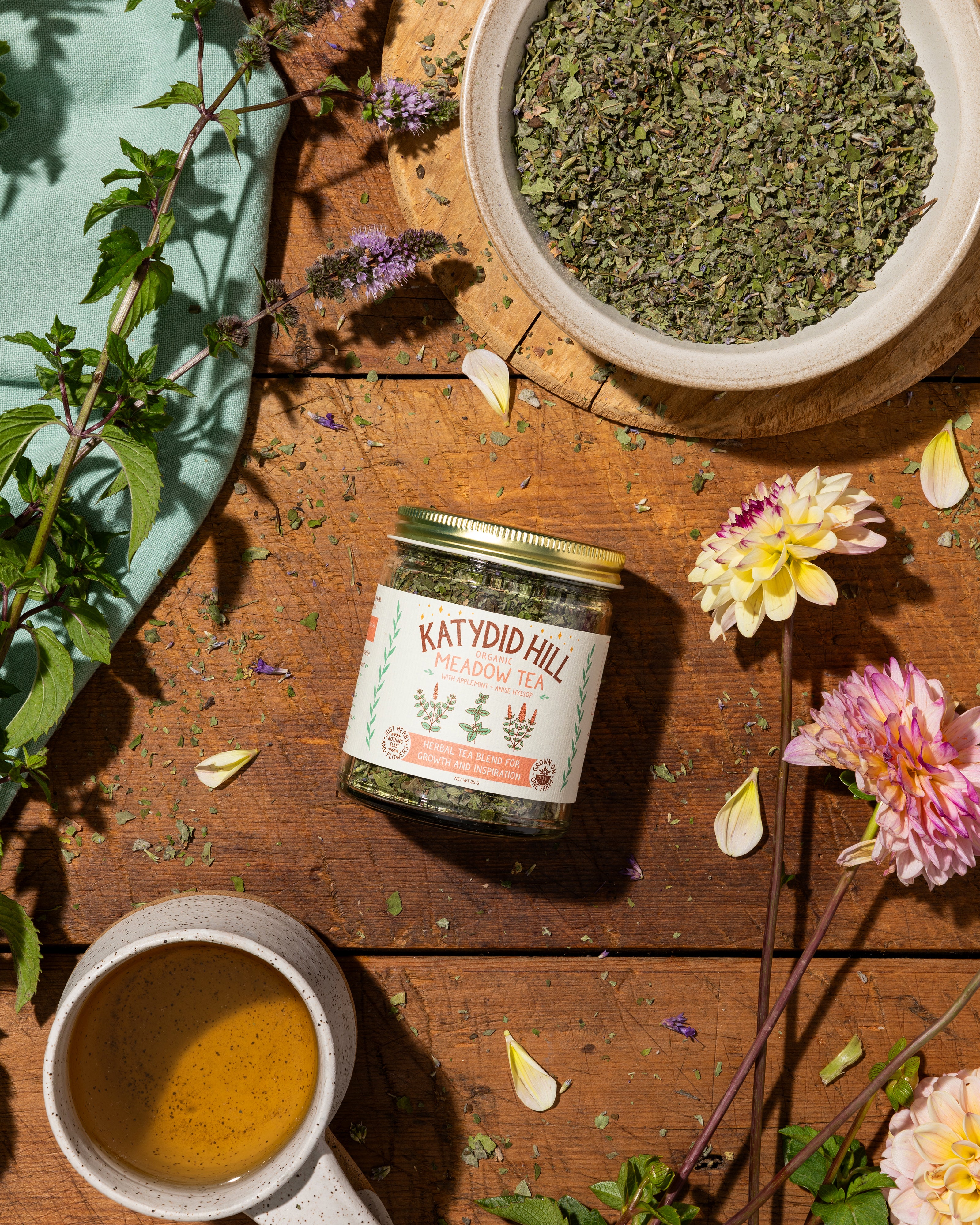 Herbal blend: Anise hyssop, Applemint, Lemon balm tea blend for growth and inspiration Notes and vibes: Sweet mint + garden dew Wildflowers in a teacup Lovingly grown and magically blended for: Daily immune & respiratory support* A comforting cold remedy* When things feel stuck Sprouting something new Revamping old traditions The wild & untamable inside you A daily dose of inspo