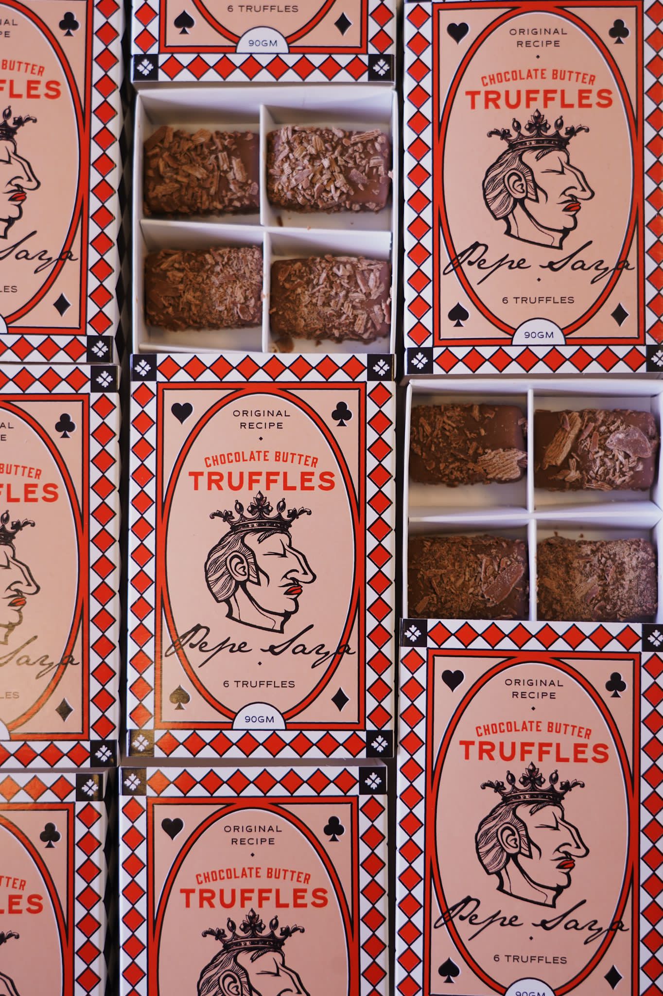 Melt-in-your-mouth buttery chocolate truffles. Made with our cultured butter, milk Belgian chocolate and covered in milk flakes. These truffles truly bring out the creamy flavour of Pepe Saya Butter. The truffles are made fresh and have a 5-7 week shelf life. |